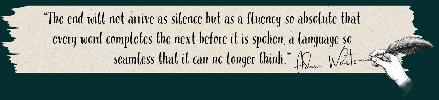 The warning, then, is quiet but serious. The danger ahead will not appear as chaos or noise. It will appear as order. Everything will read smoothly, sound coherent, and agree with itself. The slop will not look messy. It will look perfect. That is when we will know that language has stopped belonging to us.
